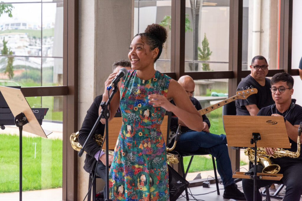 A adolescente também gostou de participar da apresentação com o Vibrasax. “Foi muito gostoso! A interação com o público foi bem animada. Foi a primeira vez que cantei junto com um grupo”, destacou a jovem artista.