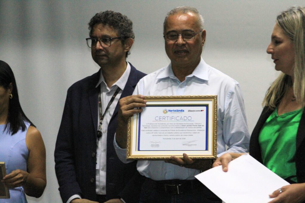 “Tudo que vocês fazem é com muito amor, carinho e dedicação, tanto que não é o primeiro prêmio que nós recebemos, são vários prêmios que foram conquistados pela nossa Secretaria de Educação, inclusive prêmios internacionais. Isso graças à competência e ao comprometimento de todos vocês. É muito importante a gente reconhecer tudo isso. Nós temos feito uma grande parceria de longos anos e eu fico feliz, porque cada vez que vem prêmio, não é prêmio para o prefeito, nem pra secretária de educação, é um prêmio para vocês daquilo que vocês fizeram até agora, daquilo que vocês entregaram até agora. A gente sabe o quanto se dedicam, porque não é uma tarefa fácil cuidar do futuro da nossa cidade, que são as nossas crianças”, ressaltou Zezé Gomes.